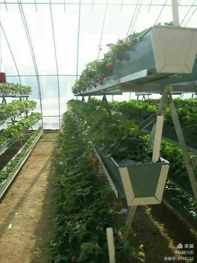 4、观光采摘棚:以反季节草莓套种葡萄为主,在棚内偏北侧光照不足的区域可建设度假木屋。一般独栋观光采摘棚占地两亩左右,可年产反季节草莓两万斤,建设度假木屋两三个。